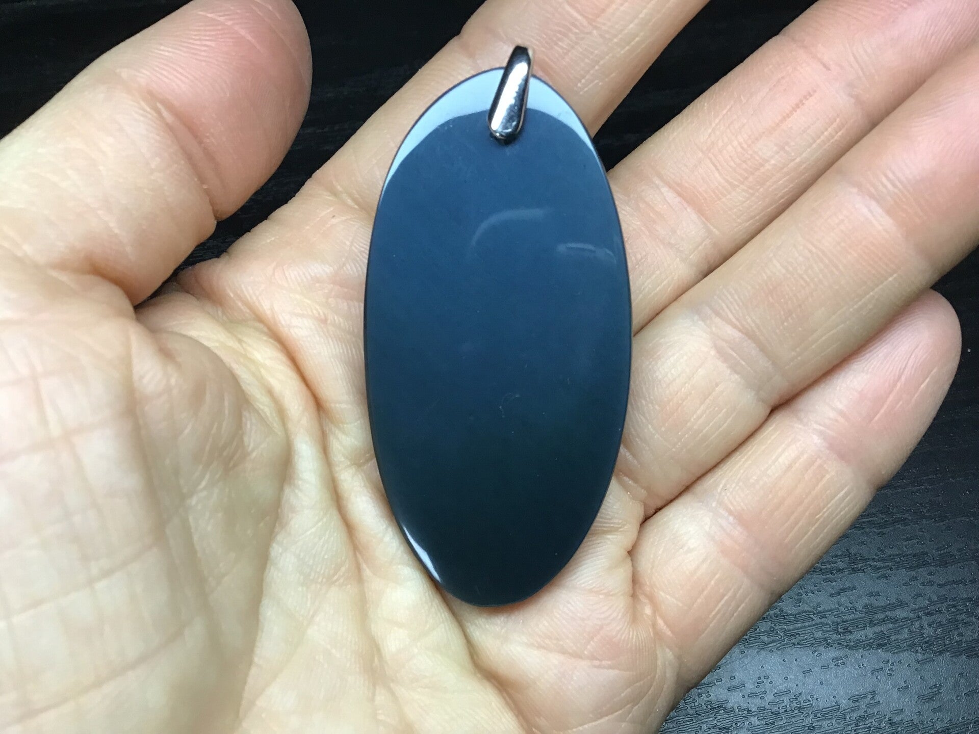 Grand pendentifs en obsidienne dite oeil céleste ou encore arc-en-ciel : il est de grand format (+ de 4cm) et a un reflet atypique, très brillant et intriguant !