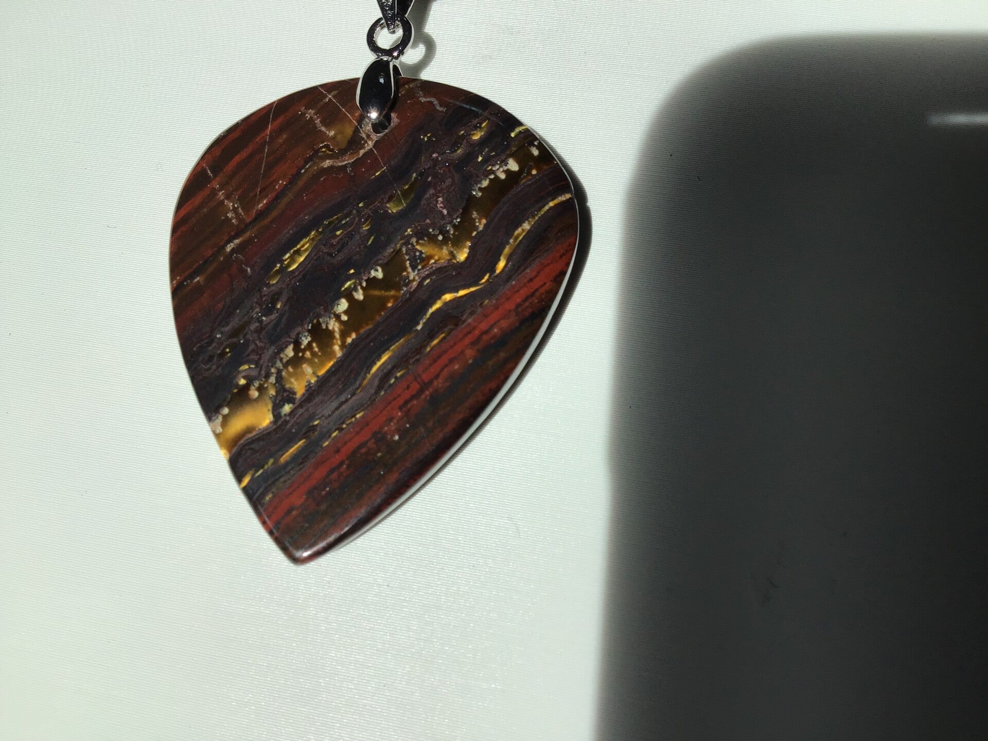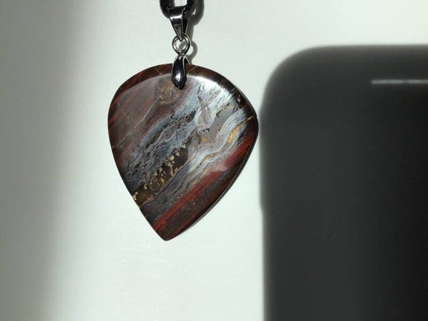 Coeur imagé de 3,2 cm avec bélière metal inoxydable, en oeil de fer d' Australie véritable, la qualité, la beauté naturelle, sont au rendez-vs.