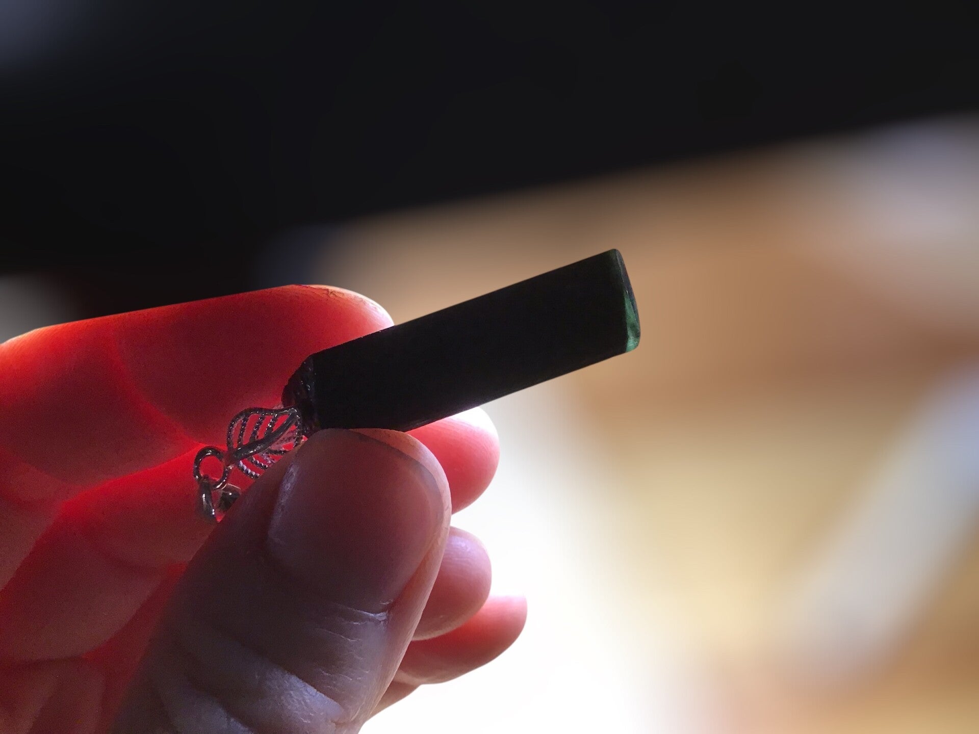 Tourmaline naturelle, brute, originaire du Pakistan, avec le bout vert / de tourmaline verte, la bélière est en argent925