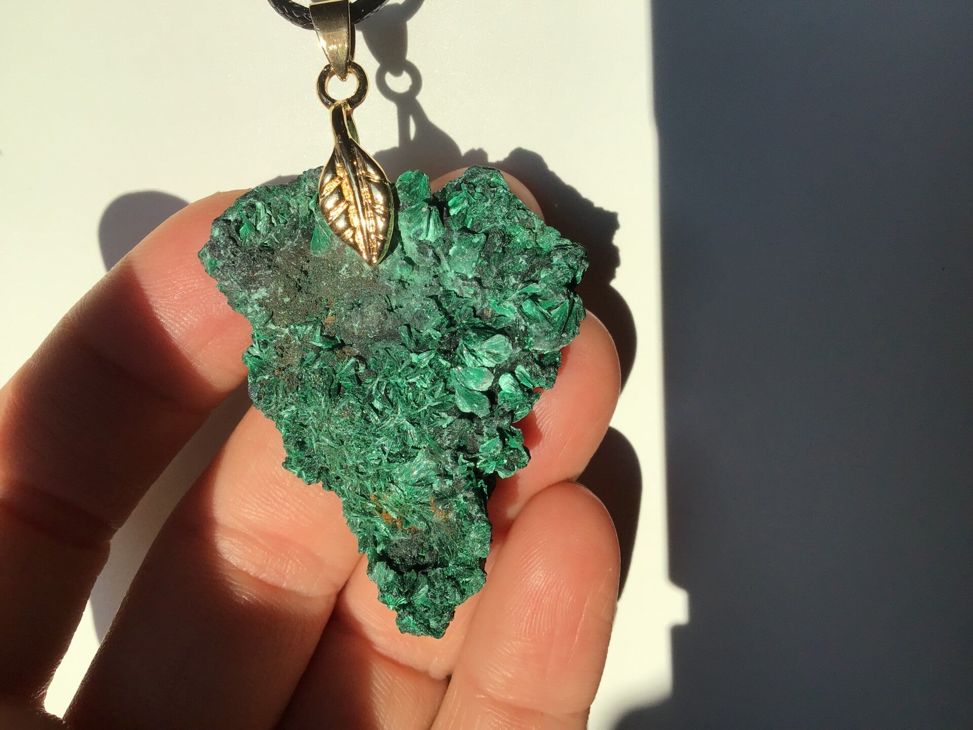 Malachite brute de 4,3 cm, percée, avec bélière laiton doré à l'or 14K.