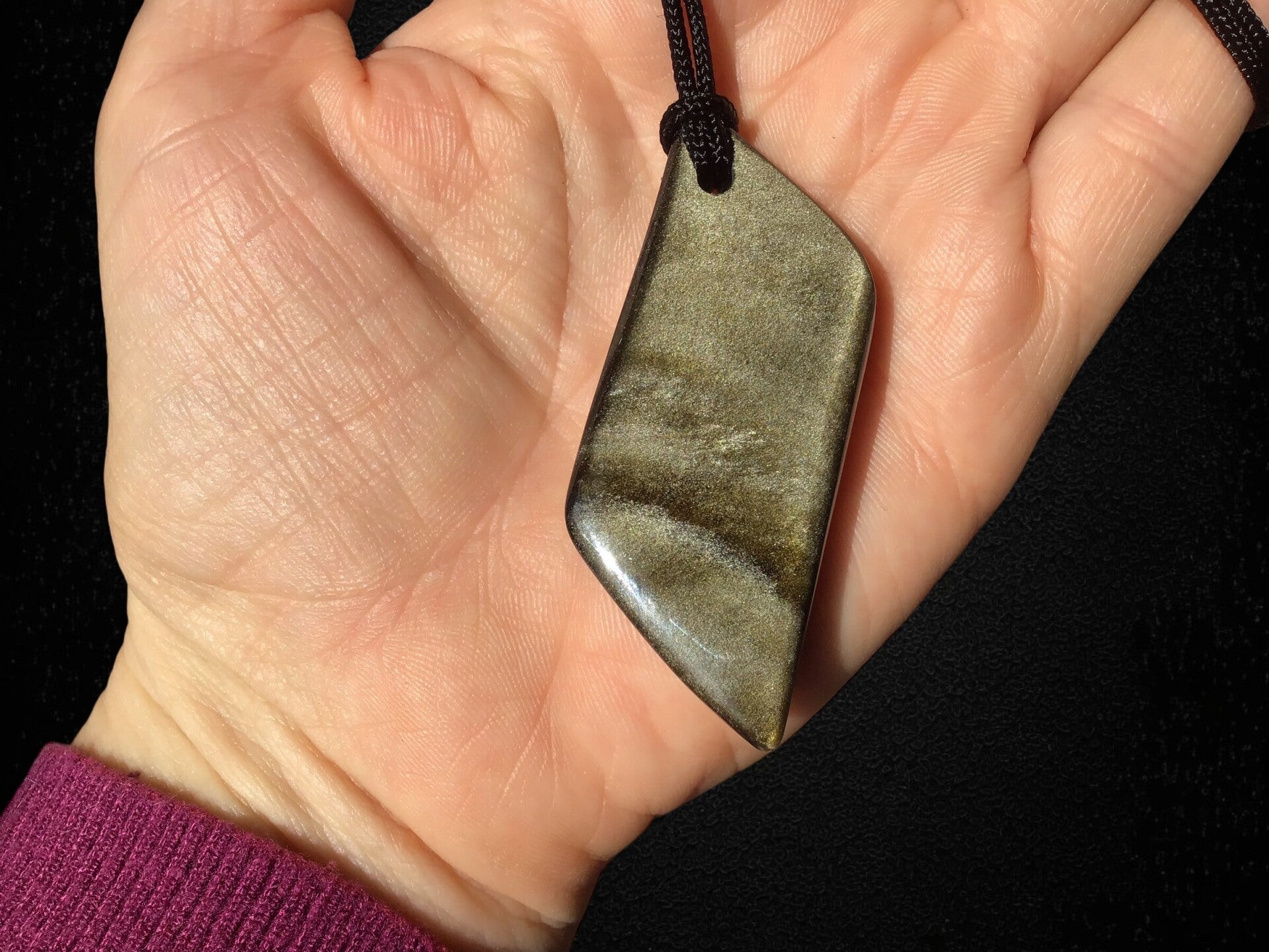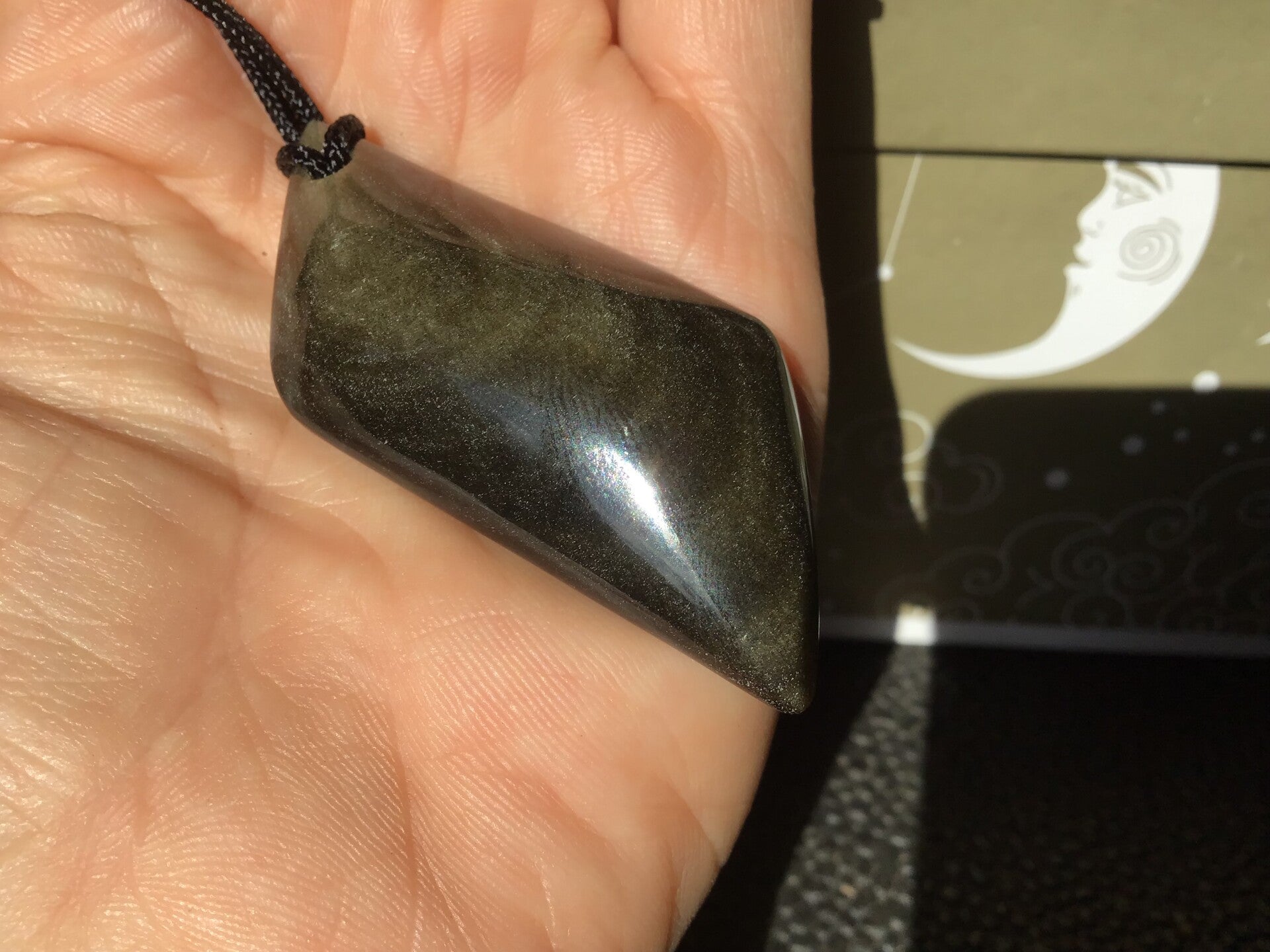 6,1 cm de beauté pour ce pendentif en obsidienne dorée extra, sur cordon réglable (réglette coulissante) en polyester