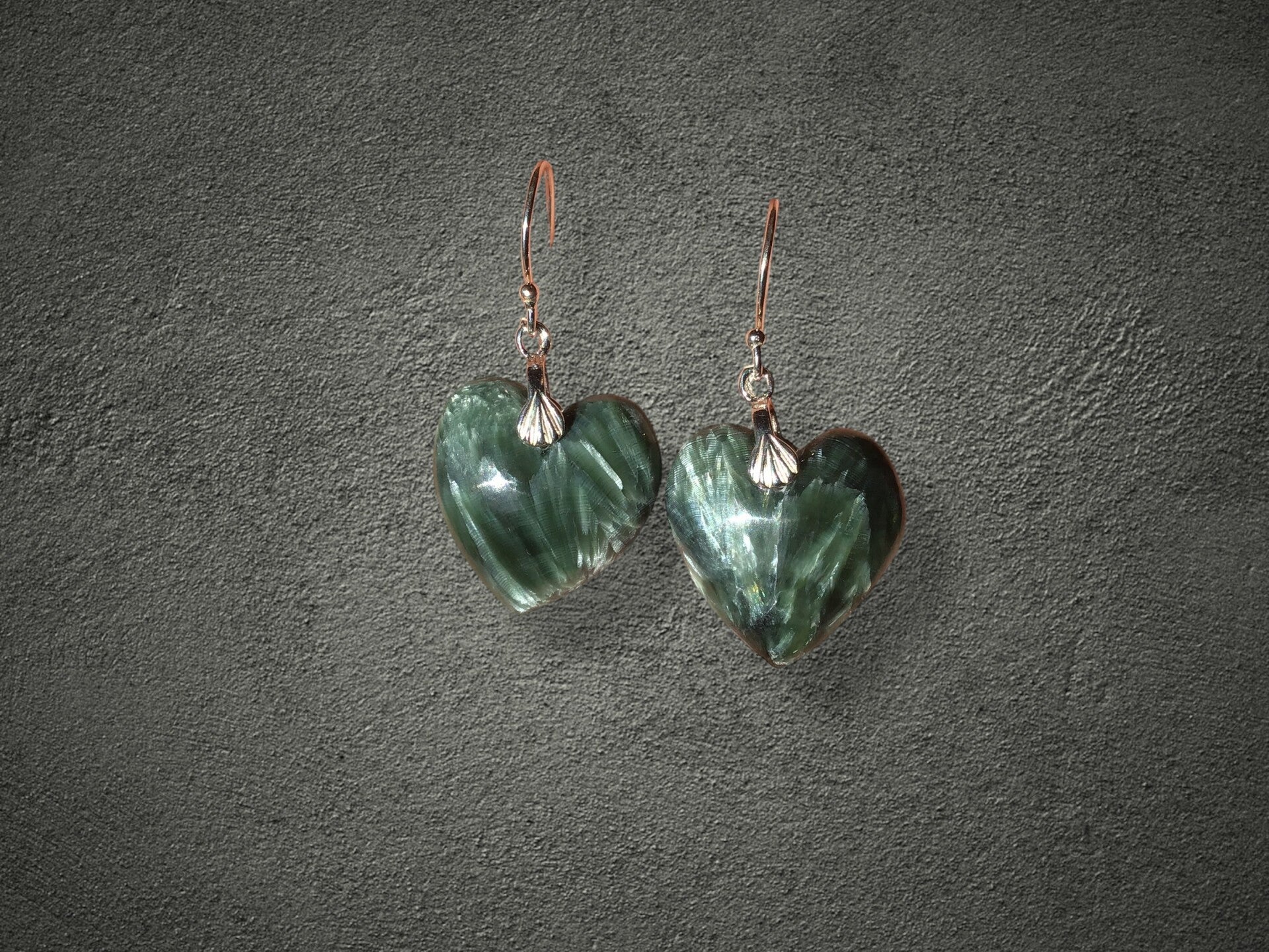 Coeurs de 1,9cm en seraphinite naturelle, sur argent 925, artisanat français, dernière paire dispo !