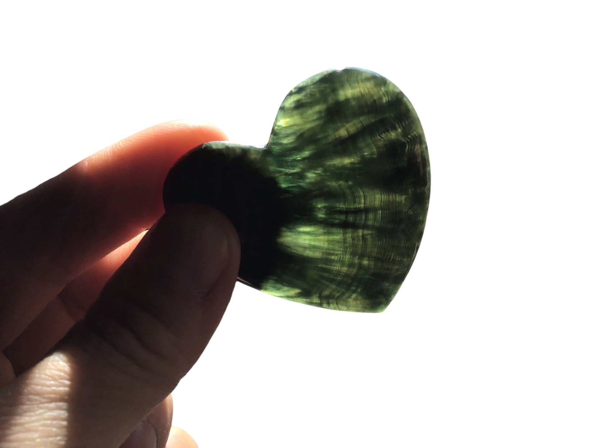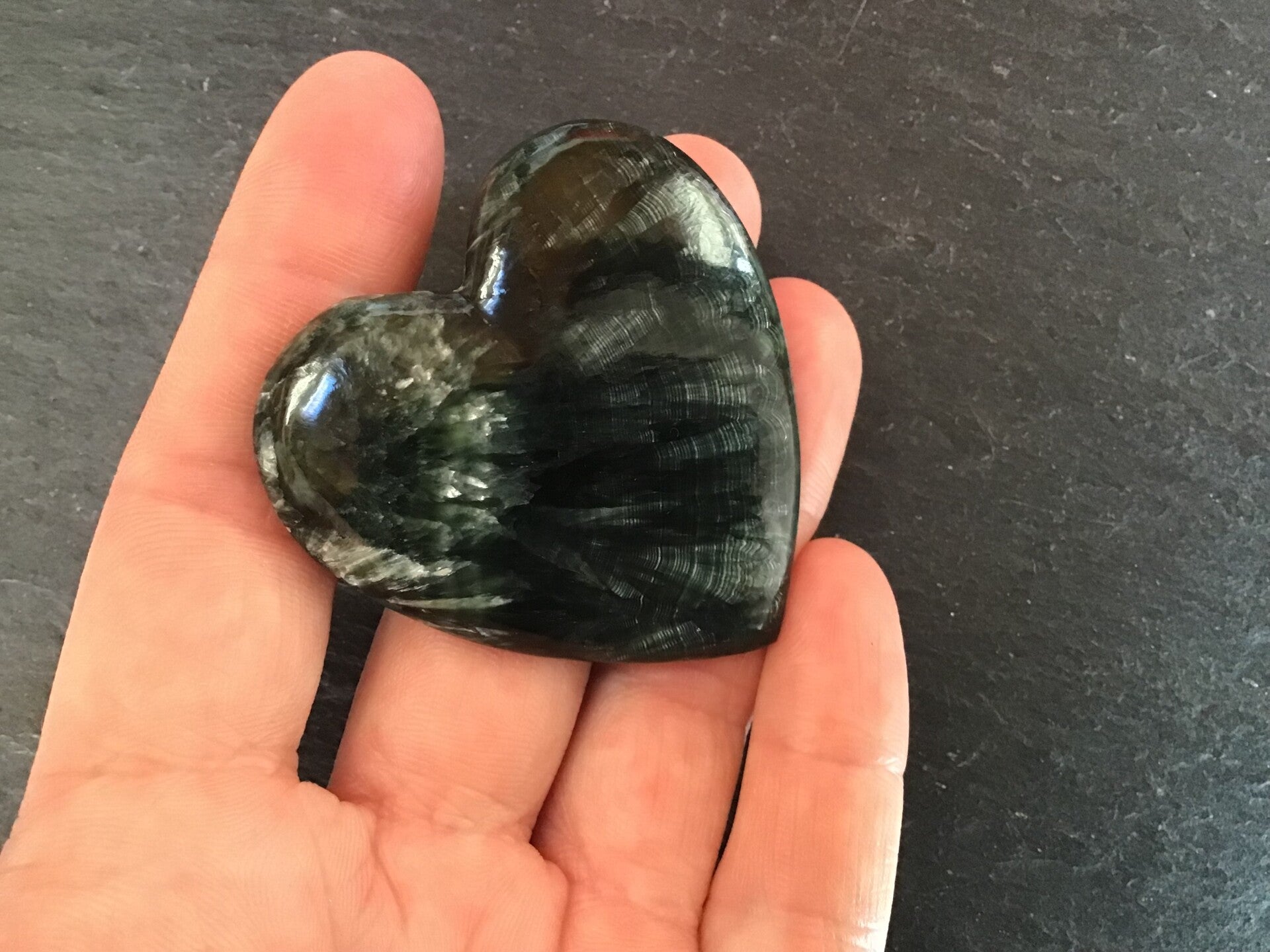 Magnifique coeur taillé main en France en clinochlore naturel russe, pas de stabilisation, pierre entièrement naturelle.