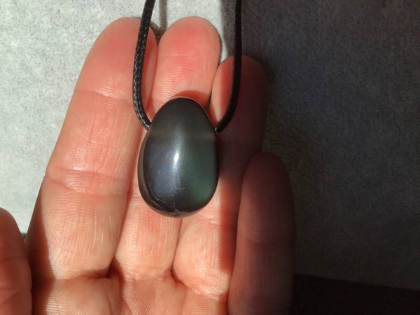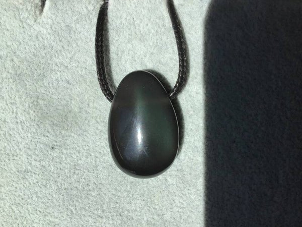 Obsidienne oeil Celeste ou arc-en-ciel, sur cordon réglable (réglette coulissante), origine Mexique.