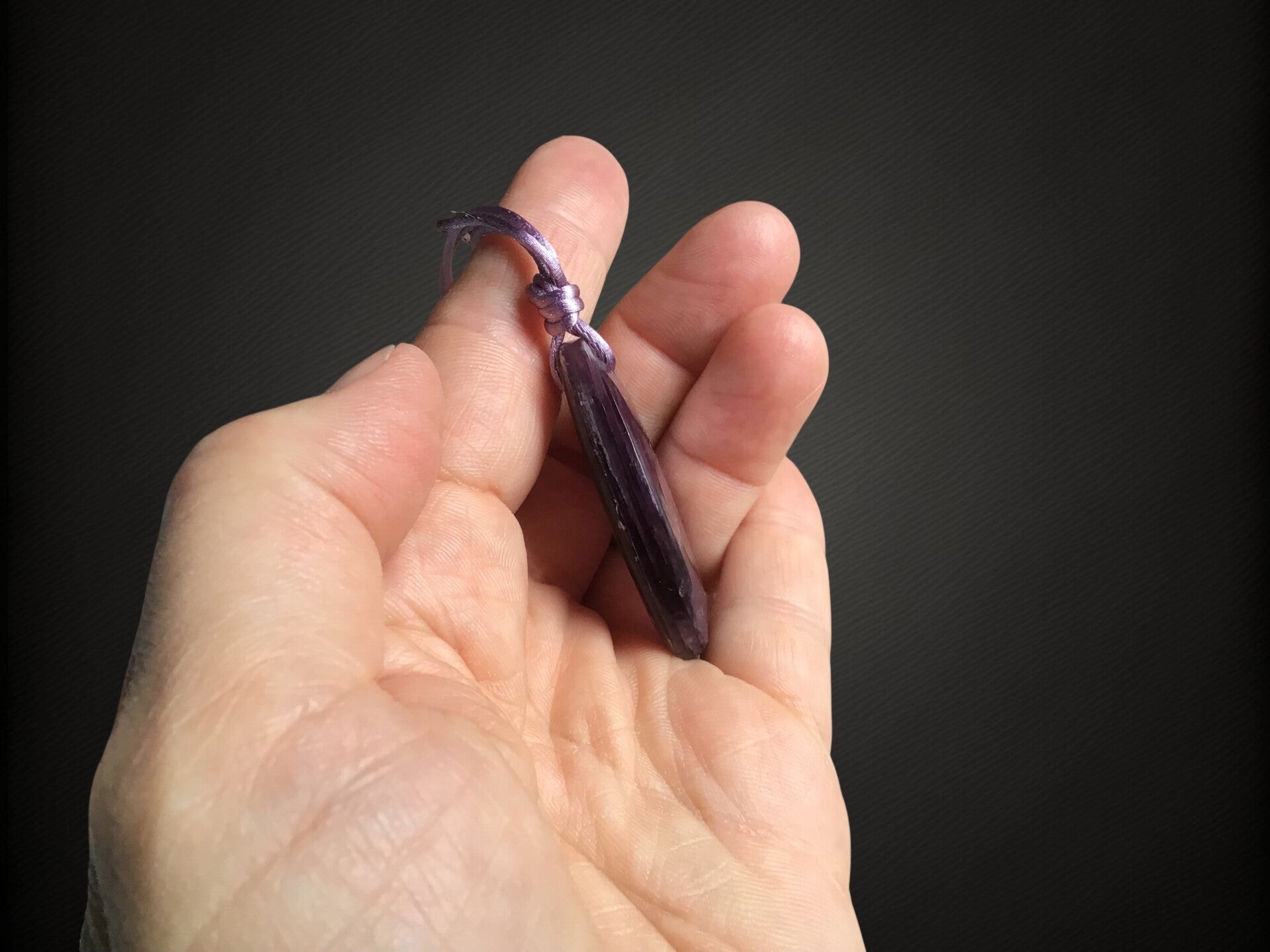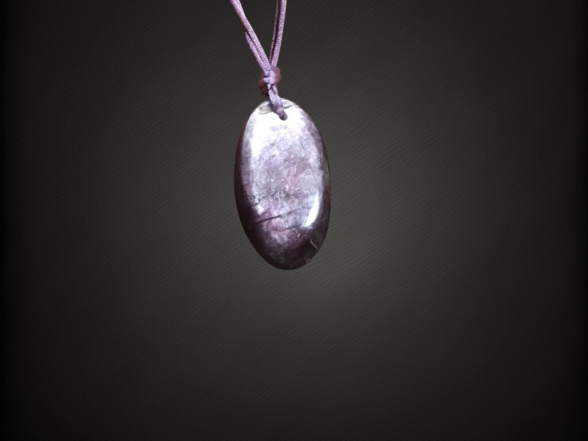 Lepidolite de 4,3cm très brillante, contenant beaucoup de mica, origine Brésil, sur cordon reglable (reglette coulissante)