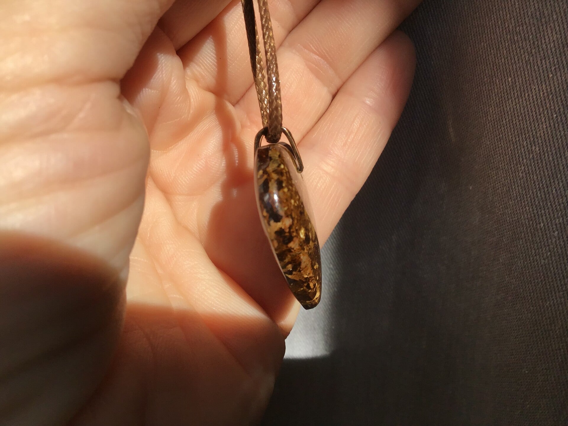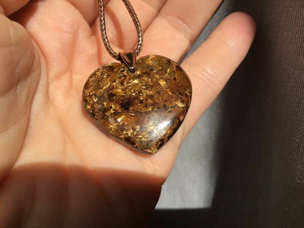 Coeur de 2,8cm en bronzite naturelle de belle qualité, avec de jolis reflets. La bélière est en argent925 plaqué or 1 micron